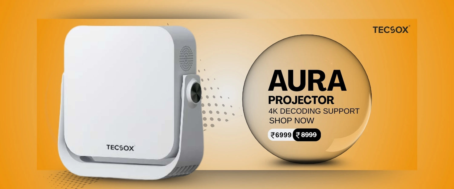TecSox Aura Projector Online | 4K Decoding Support | Native HD (720p) | Android 12 Smart OS | Under ₹7000