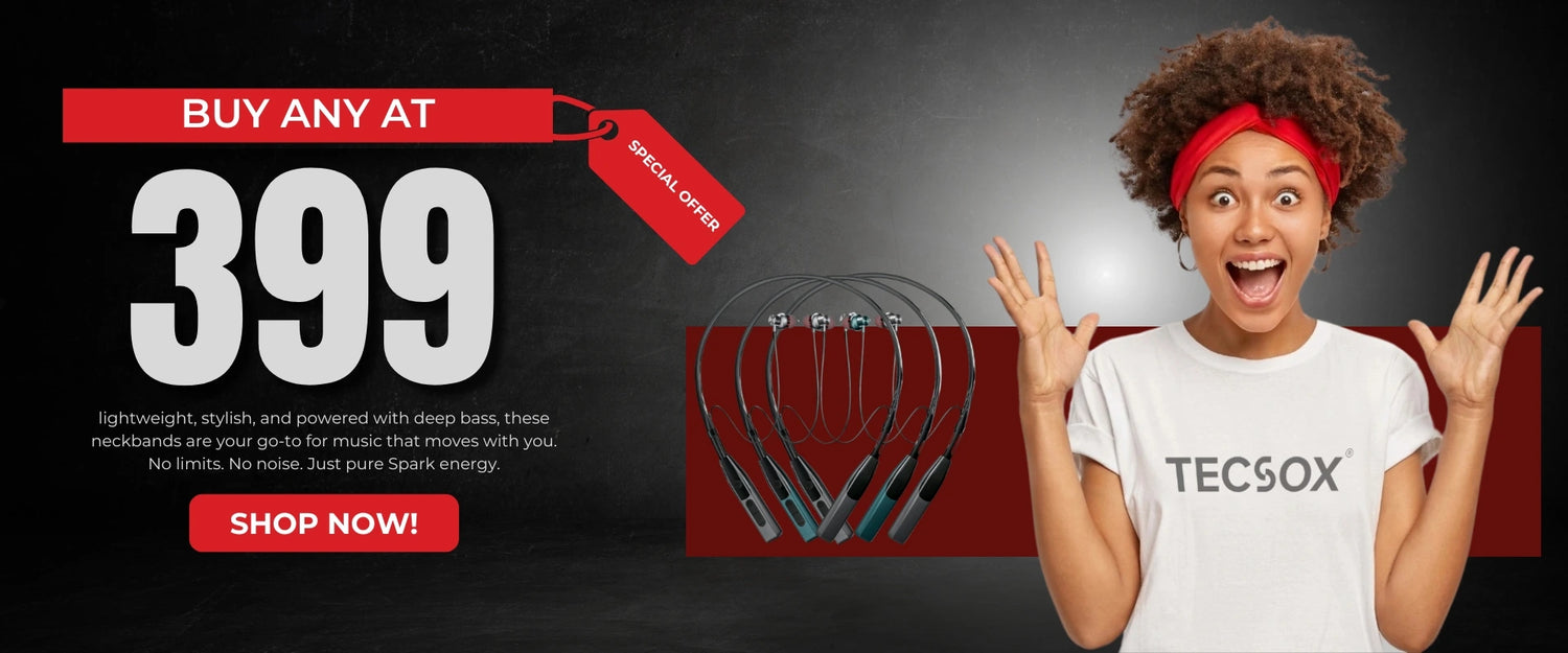 TecSox Verve Bluetooth Neckband | Metallic Touch + High Bass