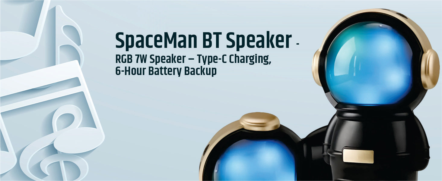 Tecsox SpaceMan Bluetooth Speaker features RGB lighting, a 7W output, Type-C charging, and a 6-hour battery life, delivering immersive audio for any setting.
