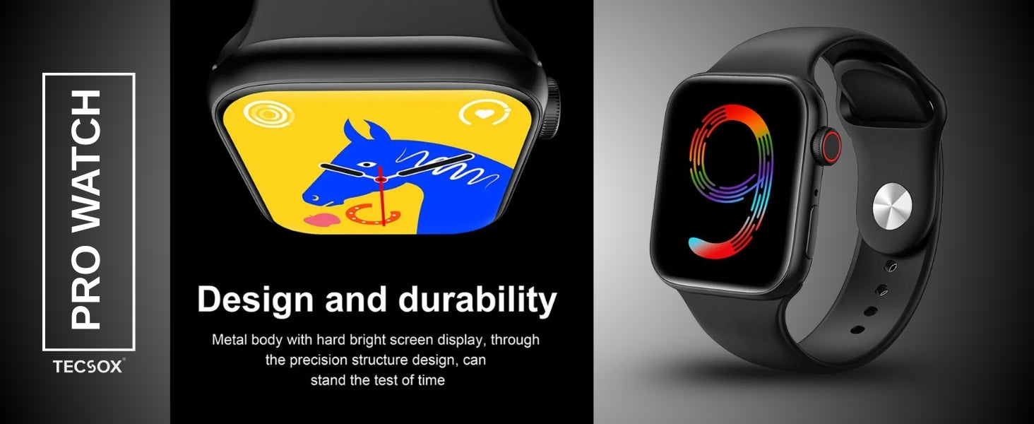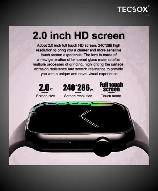 TecSox Pro Watch Smart Watch features AI voice assistance IPX water resistant.