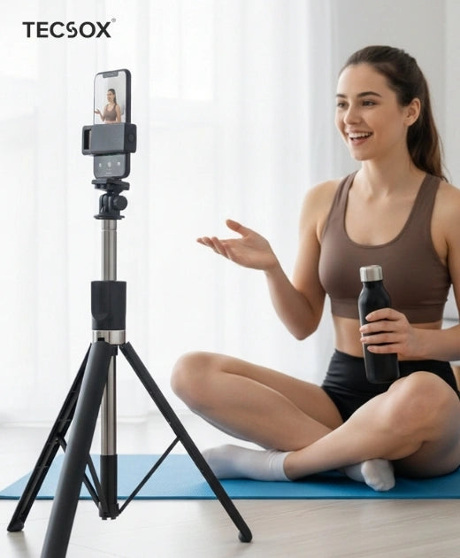 TecSox Halo Stick, 5FT Pro-Reach combines a massive 60-inch extension with high-tensile stainless steel. It is the perfect professional foundation for vlogging, high-angle shots, and studio-quality recording.