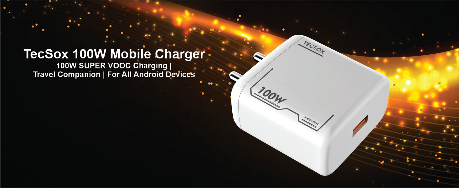 TecSox 100W Mobile Charger is a versatile, Fast Charging and Data Transfer, efficient travel companion that provides reliable power for all Android devices.