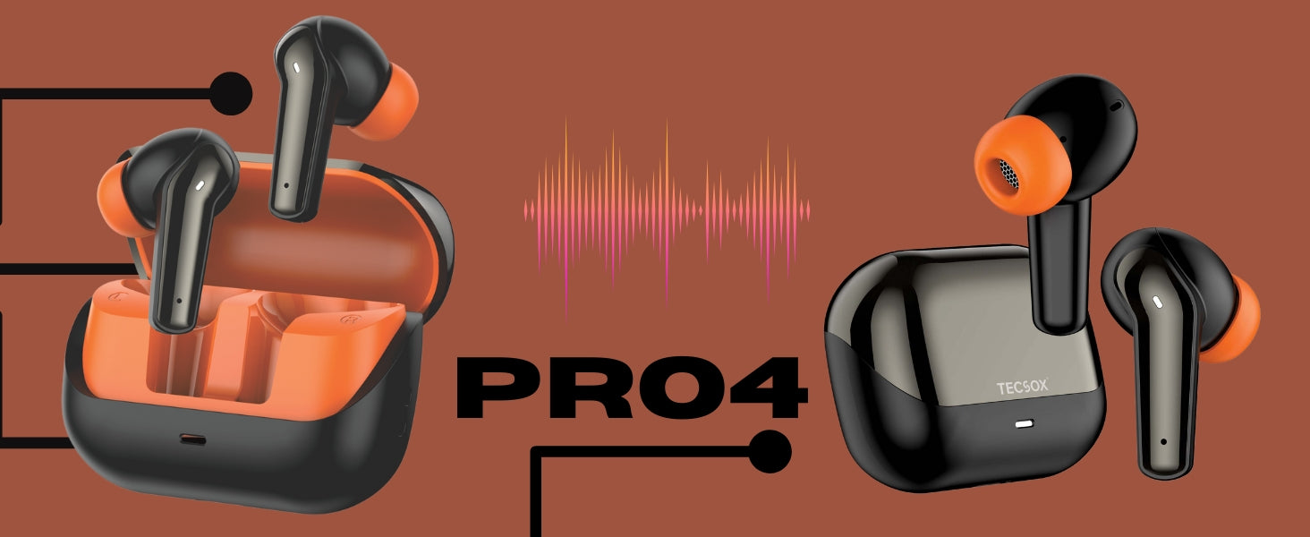 TecSox Pro 4 Earbuds provide Bluetooth connectivity, high-resolution audio, 30-hour playtime and IPX water resistance, superior sound and lasting durability.