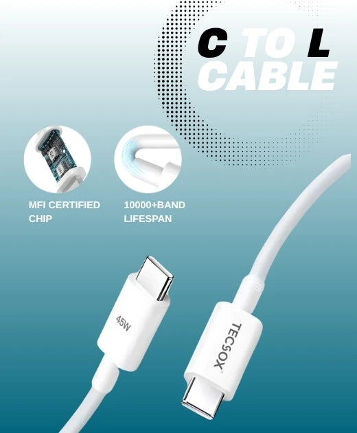 Tecsox 35W GaN Type-C Charger with Type-C to C Cable is a compact, fast charging, and efficient power solution that delivers reliable performance for all USB-C devices at home or on the go.